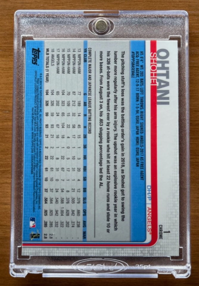 This Topps Chrome Rookie Card showcases Shohei Ohtani from his rookie season. A one of a kind card to include in your collection.